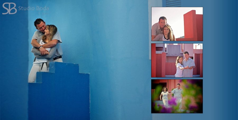 Para un fotógrafo de bodas es una gran satisfacción ver el trabajo terminado en su forma material, cuando las fotos pasan de la pantalla al álbum adquieren una nueva vida. Un álbum digital de boda es como un libro con las mejores fotos en gran tamaño. El reportaje fotográfico de Lorena y Carlos fue realmente especial y merecía un álbum a la altura. No fue una tarea fácil escoger las fotos, entre las del pre-boda en los edificios de Bofil en Calpe, el reportaje de boda y la sesión Trash The Dress en la cueva.