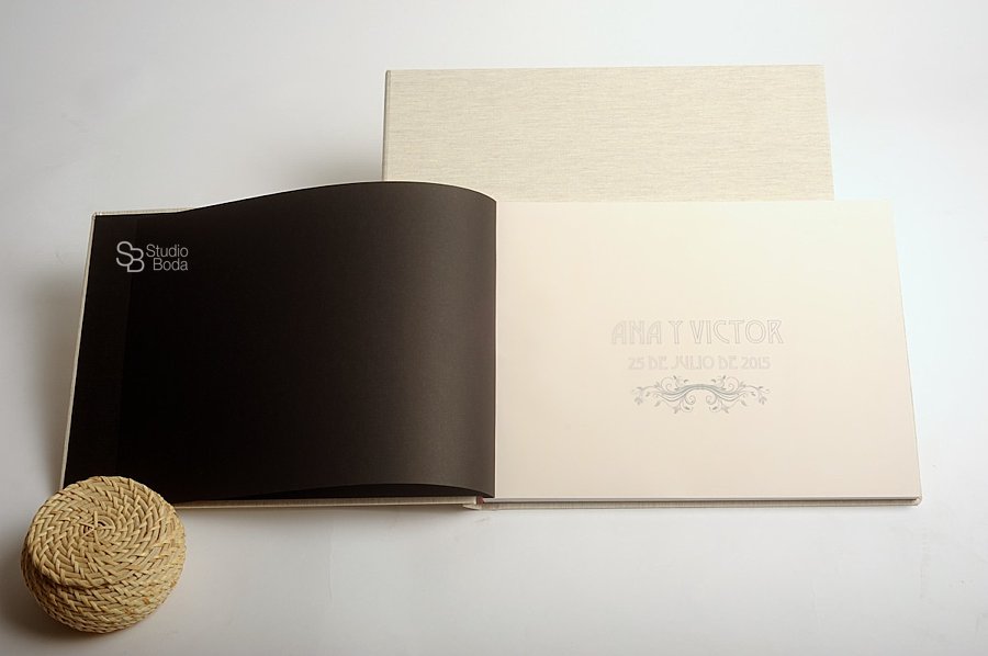 Esencialmente es un álbum fotográfico de boda con una encuadernación de un libro. La medida que recomendamos es de 30×40 cm en horizontal ya que mantiene la relación con la medida del sensor que es rectangular. En cuanto al papel de impresión existen diferentes tipos que ofrecen una diferente experiencia, con textura o satinados.
