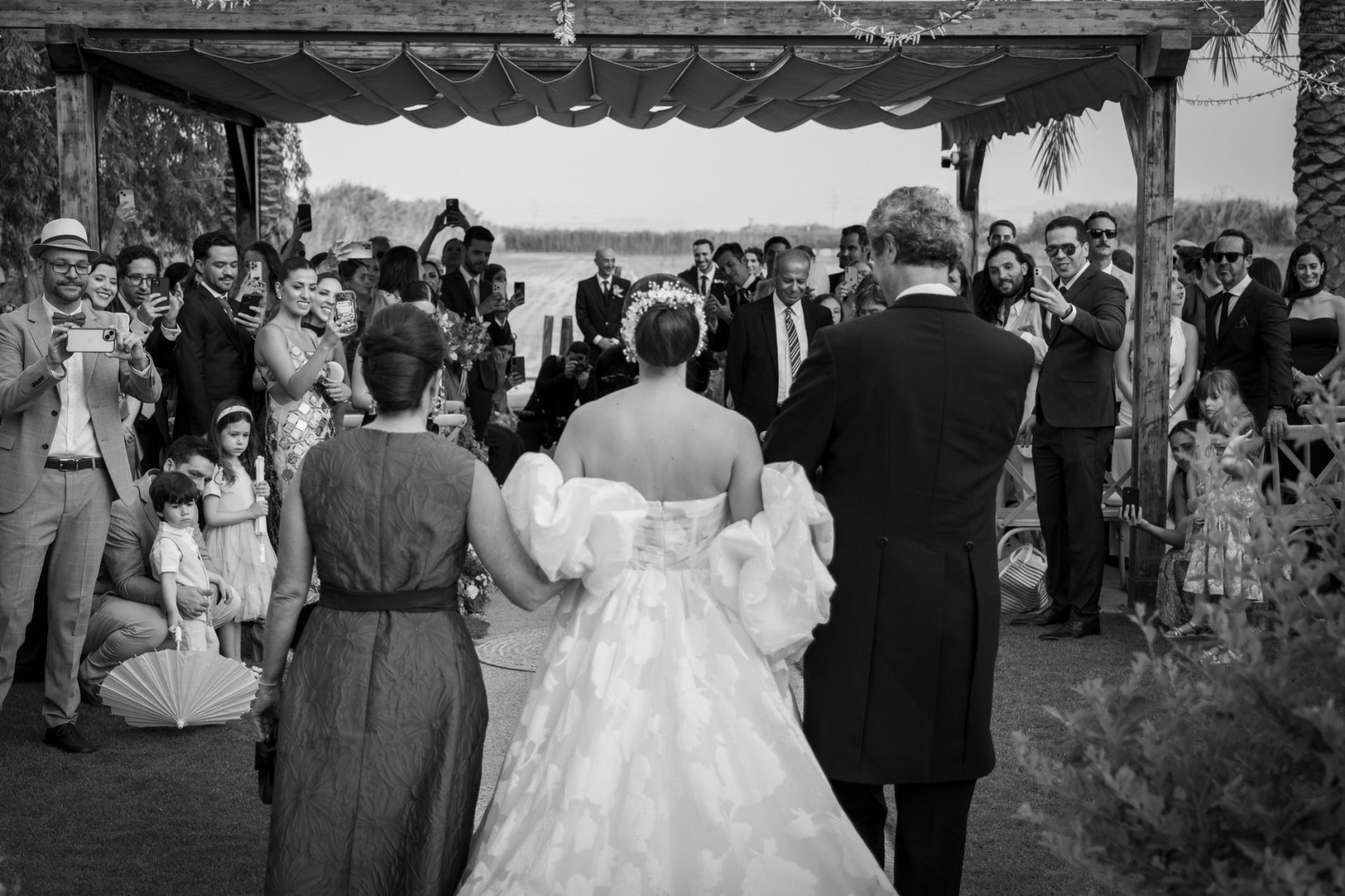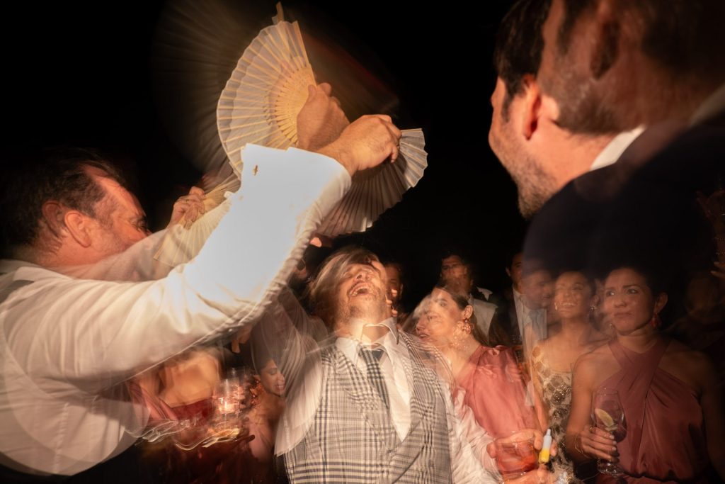 Las fotografías del paseo en barca, la ceremonia y parte de la fiesta fueron tomadas con una Panasonic S1 y un objetivo 24-105mm f/4.0. Una combinación robusta y muy flexible que me permite trabajar con rapidez, moverme con libertad y cubrir una amplia gama de planos sin necesidad de cambiar de lente.