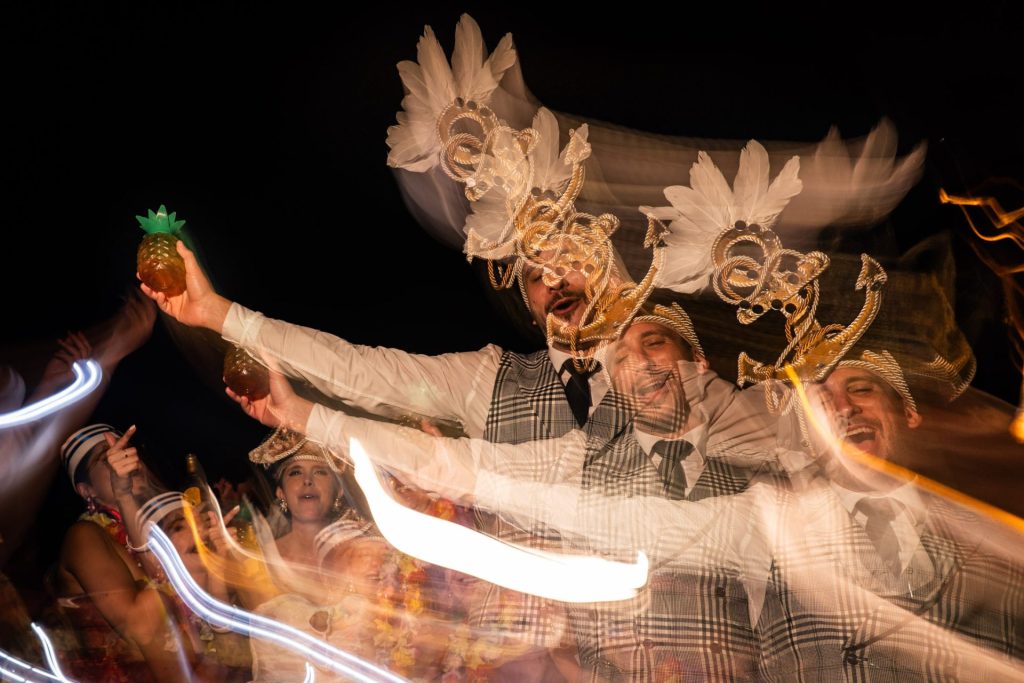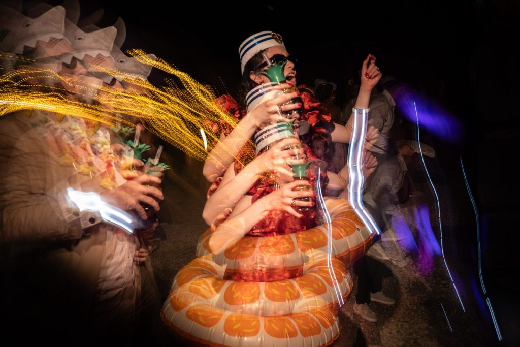 Disfraces, máscaras, confeti, la pista de baile llena y cero vergüenza. Un desmadre en el mejor sentido. Todos entregados, viviendo el momento al 100%.