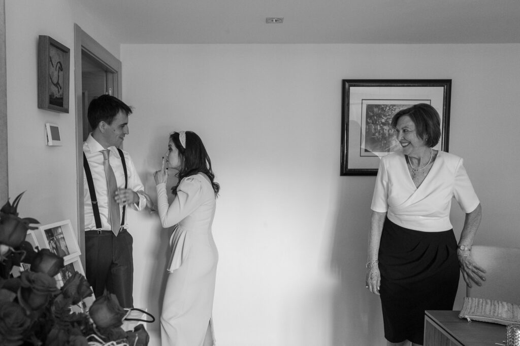 Cuando es conveniente realizamos el reportaje con dos fotógrafos para poder estar en las casas del novio y de la novia al mismo tiempo. De esta forma nadie tiene que cambiar planes o adelantar el momento en que ponerse el traje. De hecho creo que Vicente aprovechó la mañana para jugar un partido de tenis con amigos…