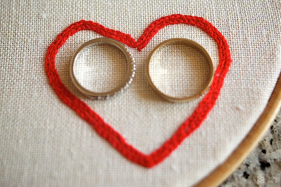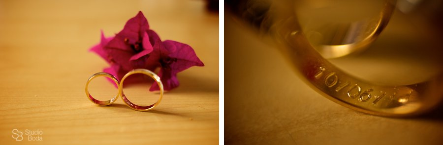 A la hora de realizar el álbum no puede faltar la foto de las alianzas, hacen parte de la historia de un reportaje de boda. Con el pasar de los años le he tomado cariño a este rito de colocar los anillos en lugares insólitos, hay veces que ya están enganchados con cintas en un bonito cojín que me da pena quitarlos y las retrato tal cual están.