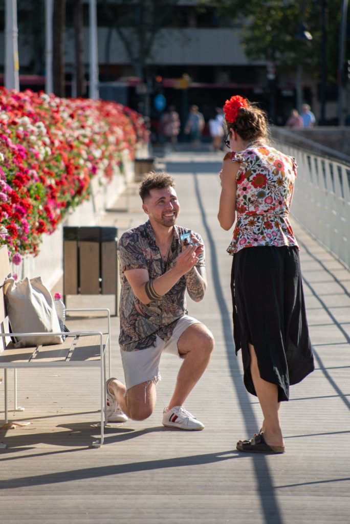 Originarios de Australia, Stephen y Maca han construido una relación sólida basada en su amor por los viajes y la aventura. Su pasión por descubrir nuevos destinos y sumergirse en diferentes culturas ha fortalecido su vínculo, creando una base de experiencias compartidas y recuerdos inolvidables. Decidido a sorprender a Maca de una manera que reflejara su amor por la exploración y la belleza, Stephen planificó una Pedida de Mano en Valencia que combinaría la espontaneidad con la elegancia de los Jardines del Turia.