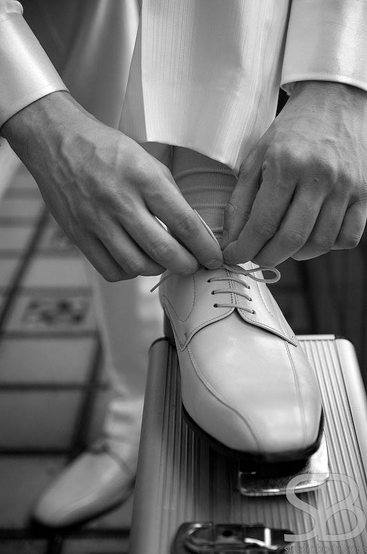El reportaje empezó por casa del novio, donde realizamos una serie de retratos de Rubén buscando poses naturales y detalles del traje. Luego fuimos a casa de la Novia para captar algunos momentos expresivos de sus preparativos.